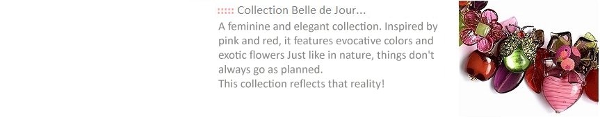 ::::: Design. Our jewelry is mostly made of glass beads of european origin : Venice, Bohemia, Germany or France. Some are adorned with gold or silver, blending fire and age-old skills, with the spark of cut glass, silk ribbons or the iridescense of mother-of-pearl. The jewelry springs from the imagination of their creator, Dominique Brénéol-Truchot. Inspired by her verdant environment, she reinvents the theme of nature each season : sumptuous gardens or a palette of flowers like poems... Always new, always sparkling... All you have to do?... Follow your heart! |